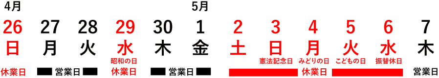 2026年 ゴールデンウイークの営業について